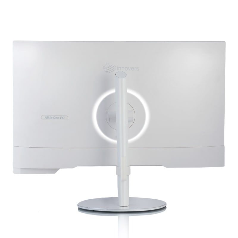 طراحی قاب پشتی هم بسیار جذاب و گیرا است. در قسمت قاب پشت و درست در جایی که پایه به نمایشگر وصل می شود، یک رینگ لایت یا حلقه نوری تعبیه شده است که وقتی ال این وان را روشن می کنید، نور آن که از نوع LED و به رنگ سفید است هم روشن می شود و زیبایی و جلوه خاصی به این ال این وان می دهد.